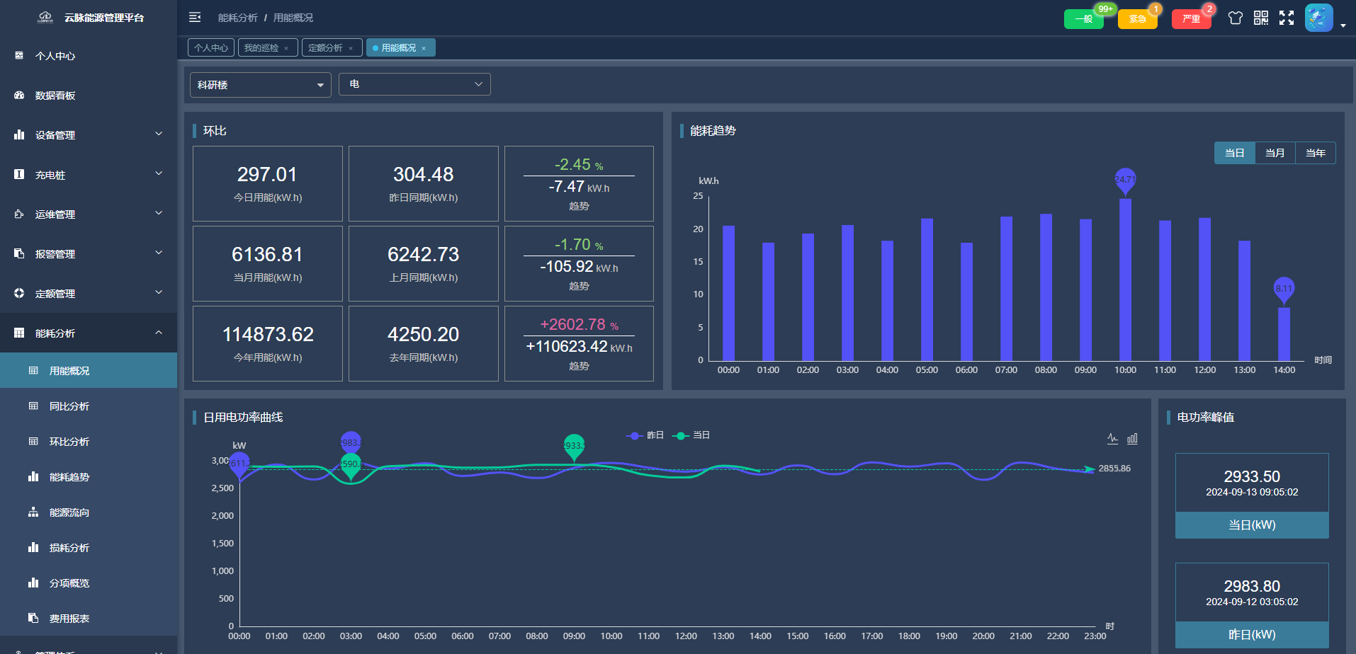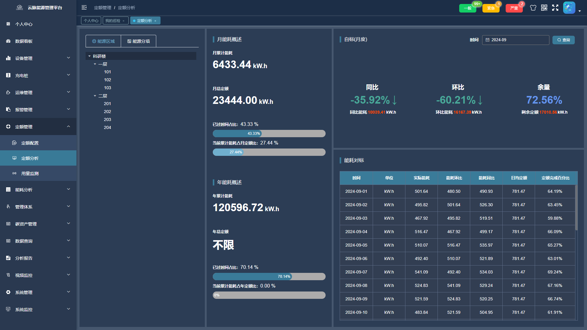4. 能耗分析 - 供能耗概览、同比环比分析、能耗趋势和分项概况等